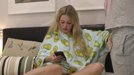 Sexy Blonde MILF gets horny and wants to cheat her husband with a guy and by playing with his balls and cock