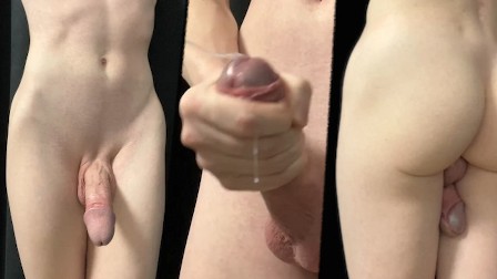 Naked twink jerks off and cums a lot