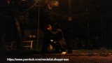 She drinks piss and cum in a public park while traffic passes