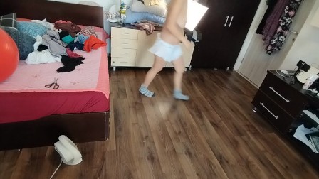 Moglie amatoriale che si diverte a provare vestiti che poi taglia.