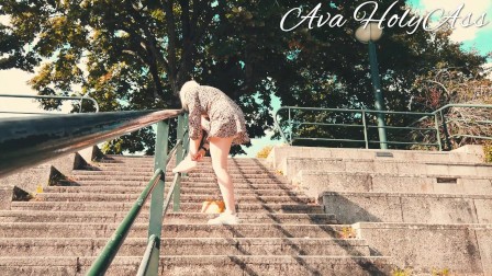 MILF flashing her ass and pussy on public stairs