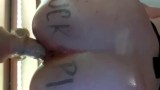 Fuckpig fucking my dildo on the mirror