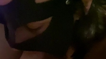 I get horny watching my boyfriend play porn game and suck his dick until he cums in my little throat