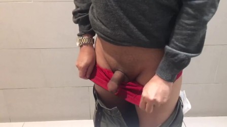 Korean hot guy took risk of masturbating in the malls toilet when someone can caught him in no time