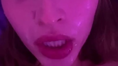 Spitting on dildo and fucking my cum dripping pussy