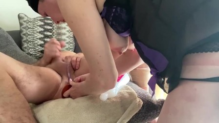 Mistress stuffing subs ass with 10 inch anal plug
