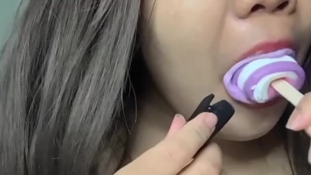 Asian Girl's Cleavage Sucking Ice Cream ASMR