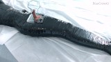 femboy in catsuit and thigh boots self mummified and CBT balls torture e-stimluation and cum