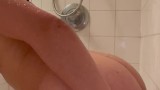 Amateur brunette plays with dildo in shower