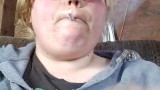 Smoker plays with boobs