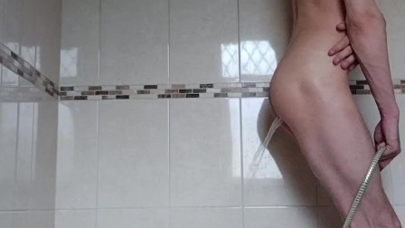 Filling with my ass with warm water and then squirting it out from my ass