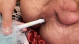 Skinny horny twig shoves a fluffy object deep up his ass