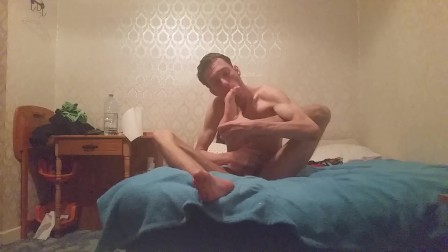 very HORNY skinny teen strokes cock and licks his feet pt 2