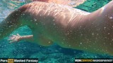 Hot MILF undressing under water and swims naked in the sea with pussy closeup