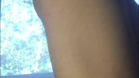 Girl sits on the window and inserts a tampon into her pussy during her period