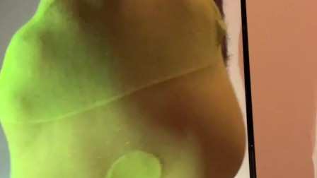 Enjoying in new neon dotted green socks