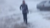 Winter snow bathing