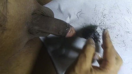 Cum on male cock hair while shaving