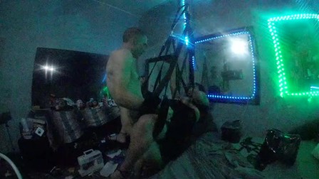 Pocahotass GETS fucked hard by Chris smooth ON SEX SWING, moans, interracial, high heels, big ass