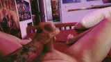 Tattooed Guy Masturbating in Bed with SloMo Cumshot