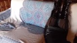 Total black with fishnets pantyhose and boots over the knee