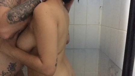 I give my neighbor a delicious pussy lick in the bathroom