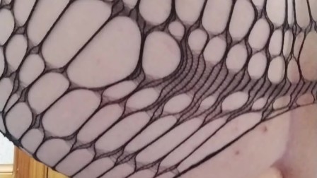Caged femboy destroys his bussy on huge dildo during late night session