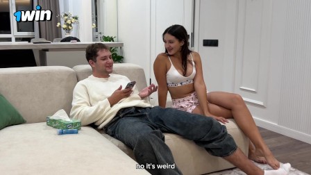Step Sis Returns at Home From Study Early and Caught Older Step Brother Jerking Off! Passionate Fuck