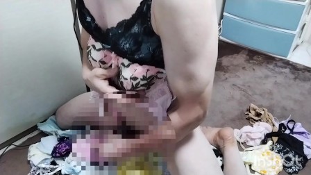 里沙の下着を履いた巨根の男がザーメンをうめき声上げるまでオナホでオナニーする
