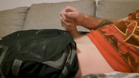 Masturbating with plenty of precum + Cumshot on my working pants