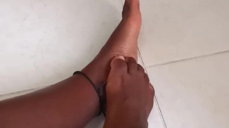 Pies sudados y sensuales, masaje con aceite y decoración de uñas