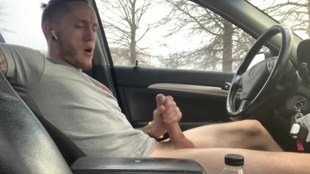 Guys almost gets caught busting a huge nut in his car