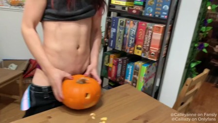 18 yo Trans Girl Fucks a Pumpkin ROUGH