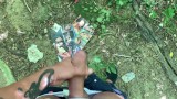Thick cock huge cumshot on a pornmagazine at the cruising area
