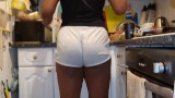 Thick Booty Latina Wife in Tight Shorts in the Kitchen - Candid