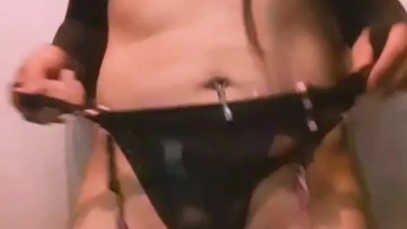 Travesty modeling sexy black lingerie