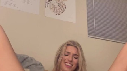 18 year old blonde college girl masterbates after class in dorm