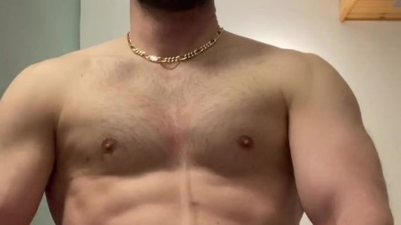 Muscle guy wank his cock and squirt a big load on his chest