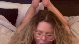 Blond milf glasses feet up blow job