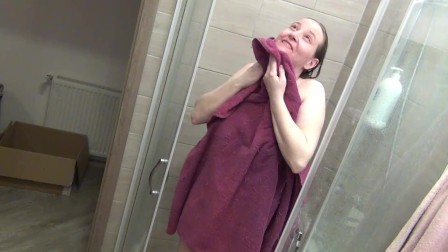 Sad Shower ( Girl take a bath in bathroom, at home. Nude natural body, natural tits. )