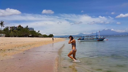 Pussy FLASHING in Paradise # Amateur video on Public Beach among fishermen and locals