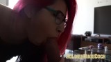 Hermosa pelirroja tetona disfruta de una enorme polla en su dulce coño