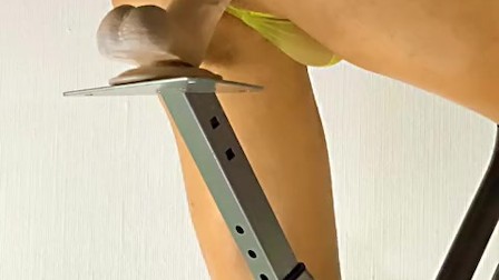 Cycling Workout Riding on Exercise Bike in Yellow Thong