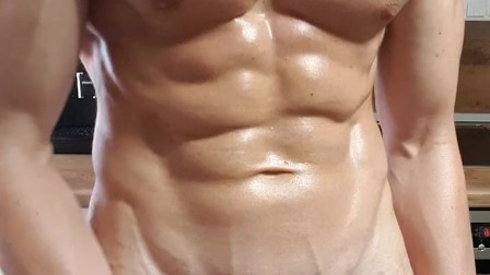 Ripped oiled alpha college jock stroking and flexing