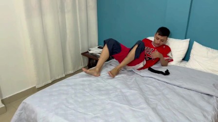 Mi hermanastra se enoja por masturbarme con su ropa interior.