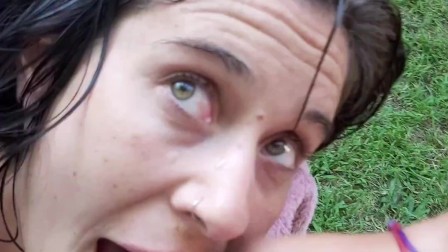 Toma sol mientras me hace garganta profunda y corrida en la boca