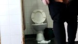 Bad girl doing a mess on public bathroom