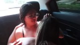 Hot girls make video in a car scissoring