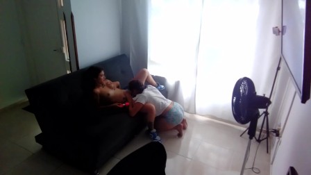 lesbian date, ends in fucking on the couch