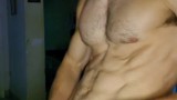 Dark-haired boy with big balls and a very marked sixpack
